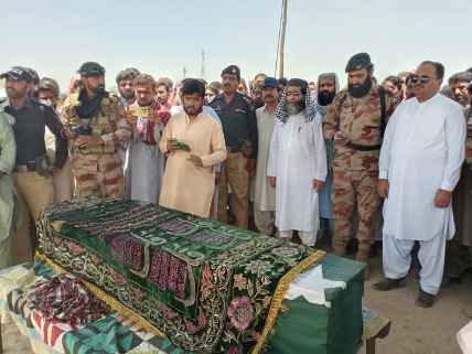 A state-level funeral was held in Bhag Nari for Additional Deputy Commissioner (ADC) Hidayatullah Buledi, who was killed while performing his official duties. The funeral was attended by senior civil and military officials, including officers from law enforcement agencies, Frontier Corps (FC), tribal elders, and a large number of citizens.