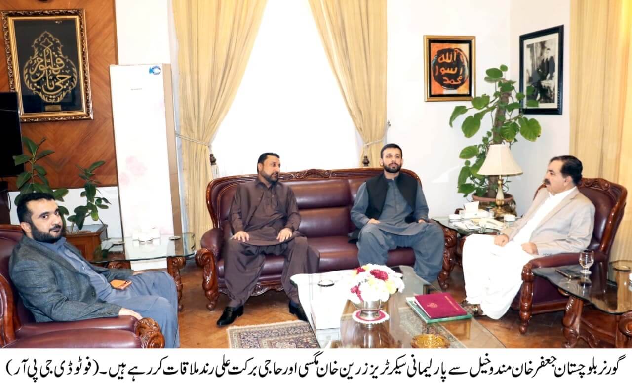 He expressed these views during separate meetings at the Governor House with Provincial Parliamentary Secretary for Culture Zareen Magasi, Parliamentary Secretary for Fisheries Haji Barkat Rind, the head of the Khuroti tribe from Quetta, Malik Syed Mir Khuroti, and PML-N leader from Zhob district, Saleem Khan Mandokhail.