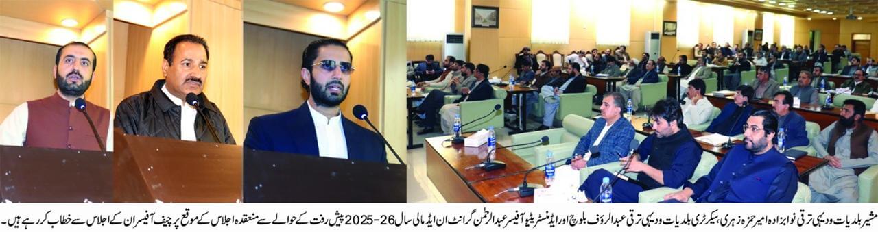 Quetta: A review meeting on the progress of Grant-in-Aid developmental projects for FY 2024–25 was held under the chairmanship of Advisor to the Chief Minister Balochistan for Local Government & Rural Development, Nawabzada Mir Amir Hamza Zehri. The meeting was attended by Secretary Local Government Abdul Rauf Baloch, Director General Muhammad Ayub Qureshi, Secretary Balochistan Local Board Shujaat Ali, senior officials of the Local Government Department, and chief officers of municipal committees, district councils, and metropolitan corporations across the province.