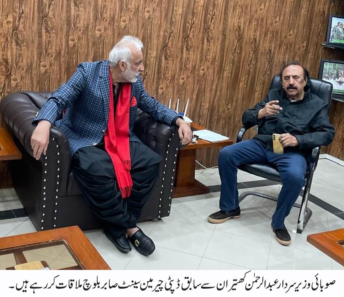 Quetta — Former Deputy Chairman Senate Sabir Baloch and former Member Provincial Assembly Haji Islam Baloch held a meeting with Provincial Minister Sardar Abdul Rehman Khetran. During the meeting, the overall political situation of the province, public issues, and development strategies were discussed in detail.