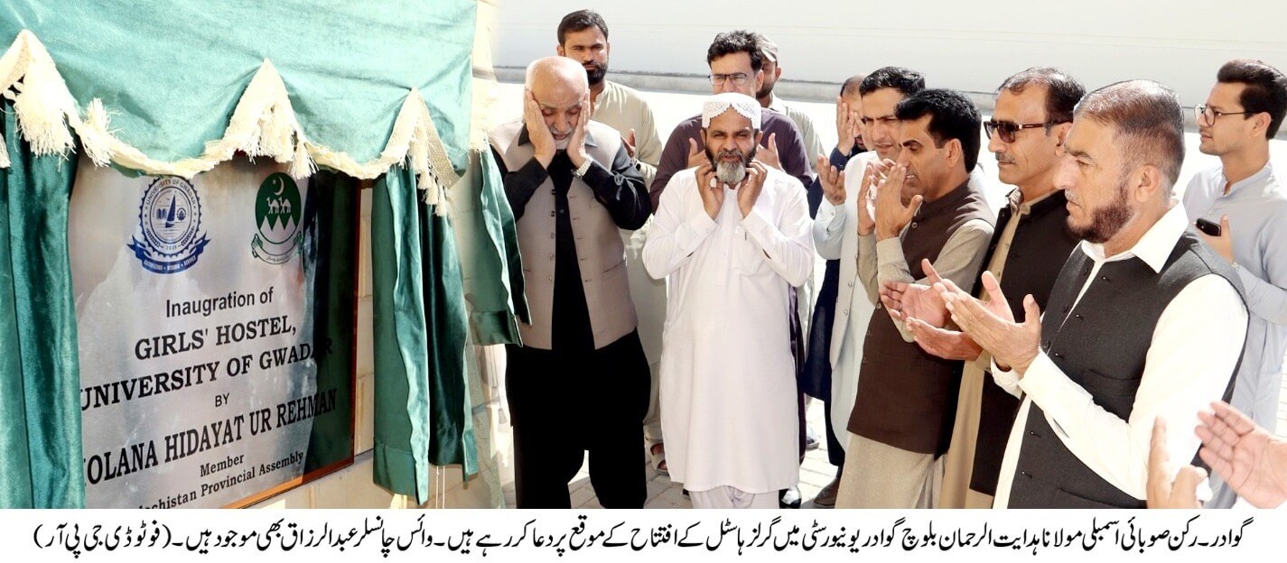 Gwadar – In line with the announcement made by Chief Minister Balochistan Mir Sarfaraz Bugti regarding the allocation of a girls’ hostel for the University of Gwadar, MPA Gwadar Maulana Hidayat ur Rehman Baloch formally inaugurated the newly constructed hostel by the Government of Balochistan. The initiative is being regarded as a significant milestone toward providing safe and quality accommodation for female students.