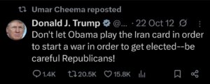 The developments have also revived scrutiny of Trump’s earlier public warnings about Iran. In a widely cited 2012 social media post, Trump had cautioned: “Don’t let Obama play the Iran card in order to start a war in order to get elected — be careful Republicans!” The resurfacing of the remark has sparked debate over the political and strategic dimensions of the current military escalation.