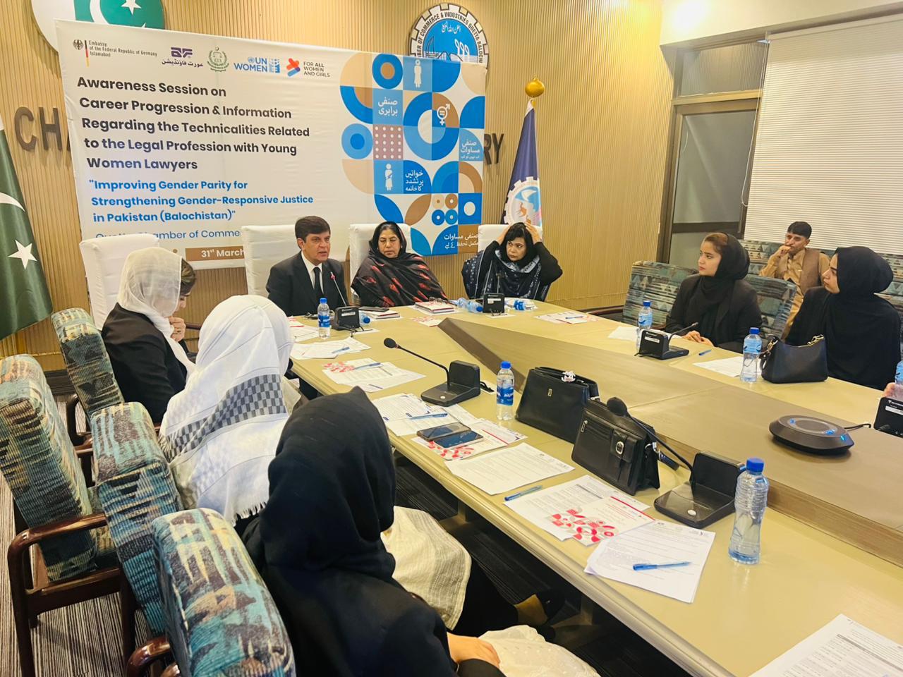 Quetta: Aurat Foundation, in collaboration with UN Women and the German Embassy, organized a significant training session for young women lawyers on March 31, 2026, at the Quetta Chamber of Commerce. The session aimed to promote women’s participation in the legal sector, enhance professional skills, and provide awareness about career opportunities in the judiciary.