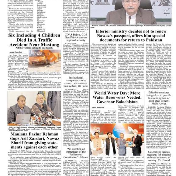 Today’s Newspaper by Quetta Voice Web DeskE-PaperMarch 16, 2021March 16, 2021[gview file=”https://quettavoice.com/wp-content/uploads/2021/03/DAily-Quetta-Voice-16-03-21.pdf”]